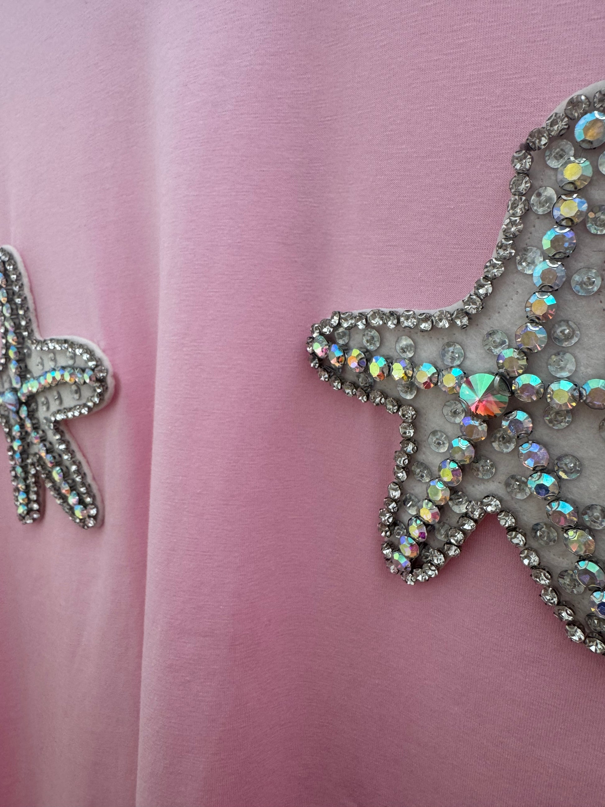 Bubblegum Pink with gorgeous sparkly star-fish details on the front.
