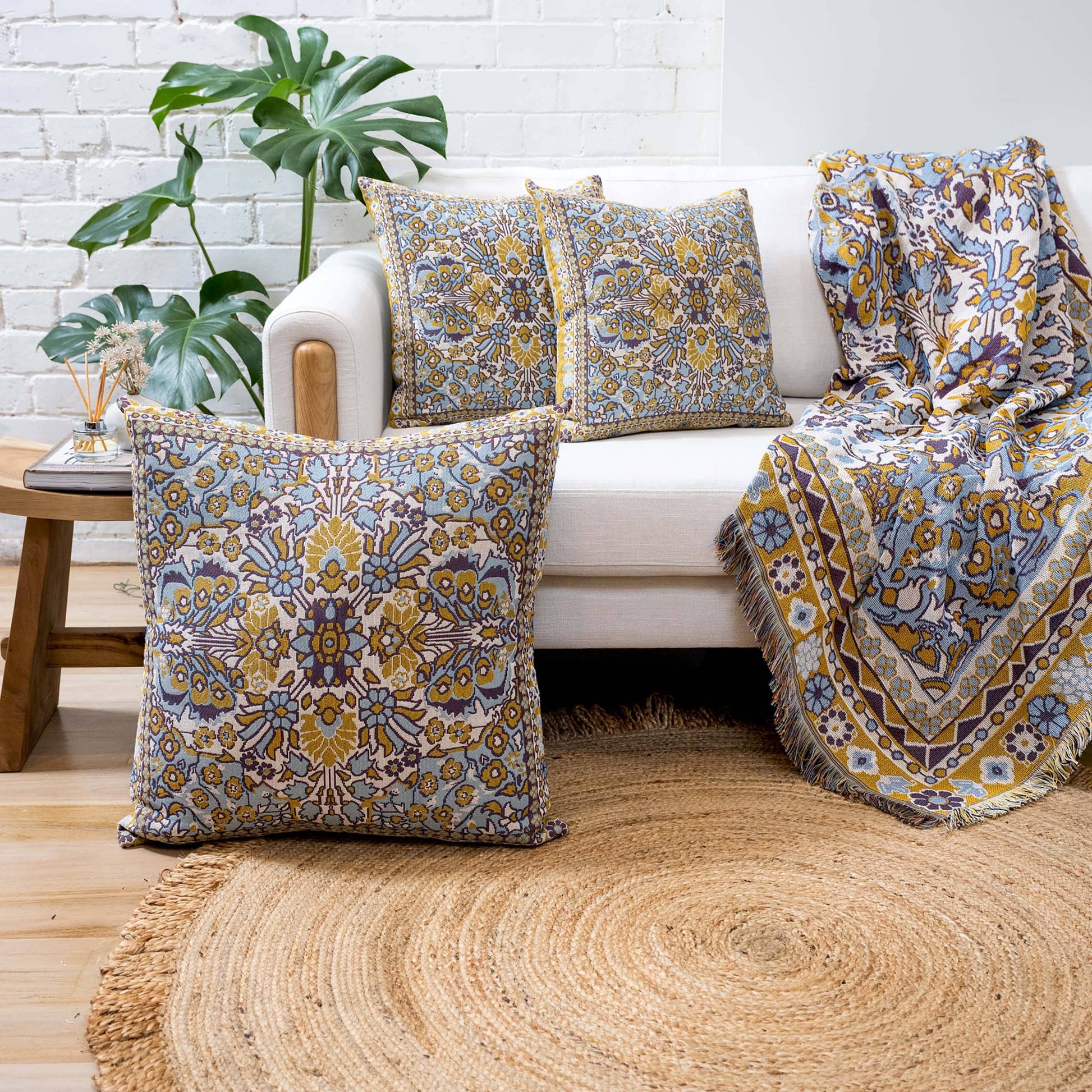 Say hello to our bold Persian-inspired design. Our 'Every Little Thing' design has a strong ethic vibe, that is playful and intricate. It has a bold mix of mustard and hints of purple and sky blue to create a striking & eclectic rug.