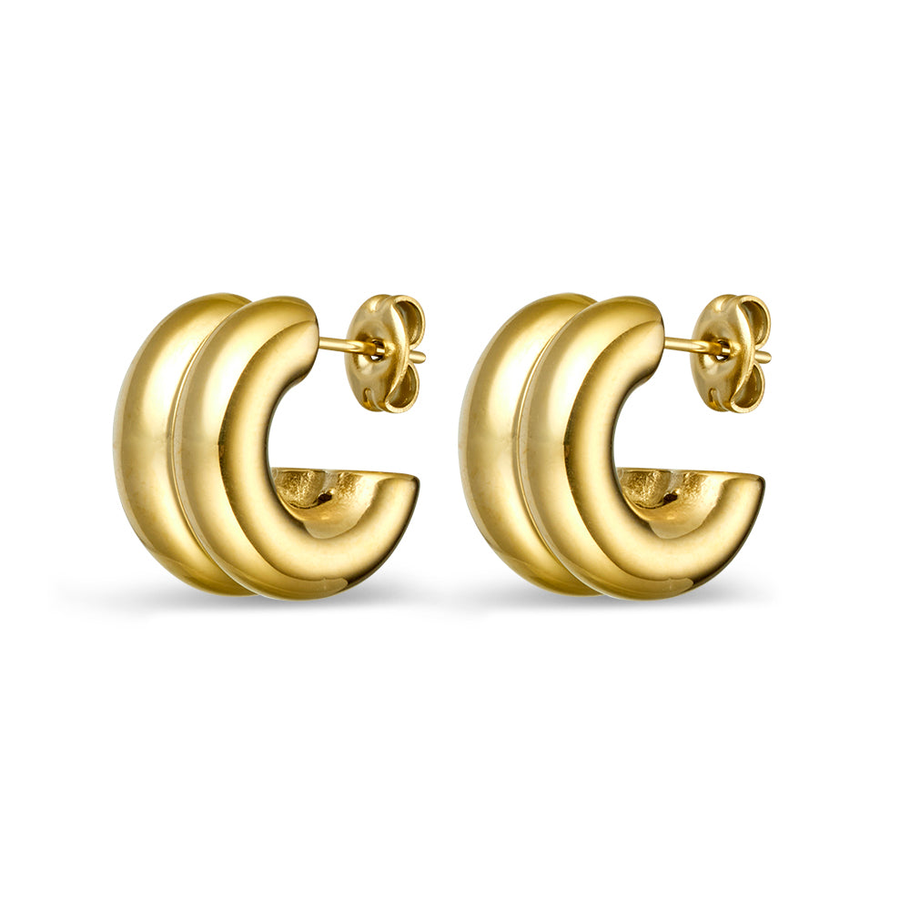 Seren stainless steel gold plated double hoop earrings.